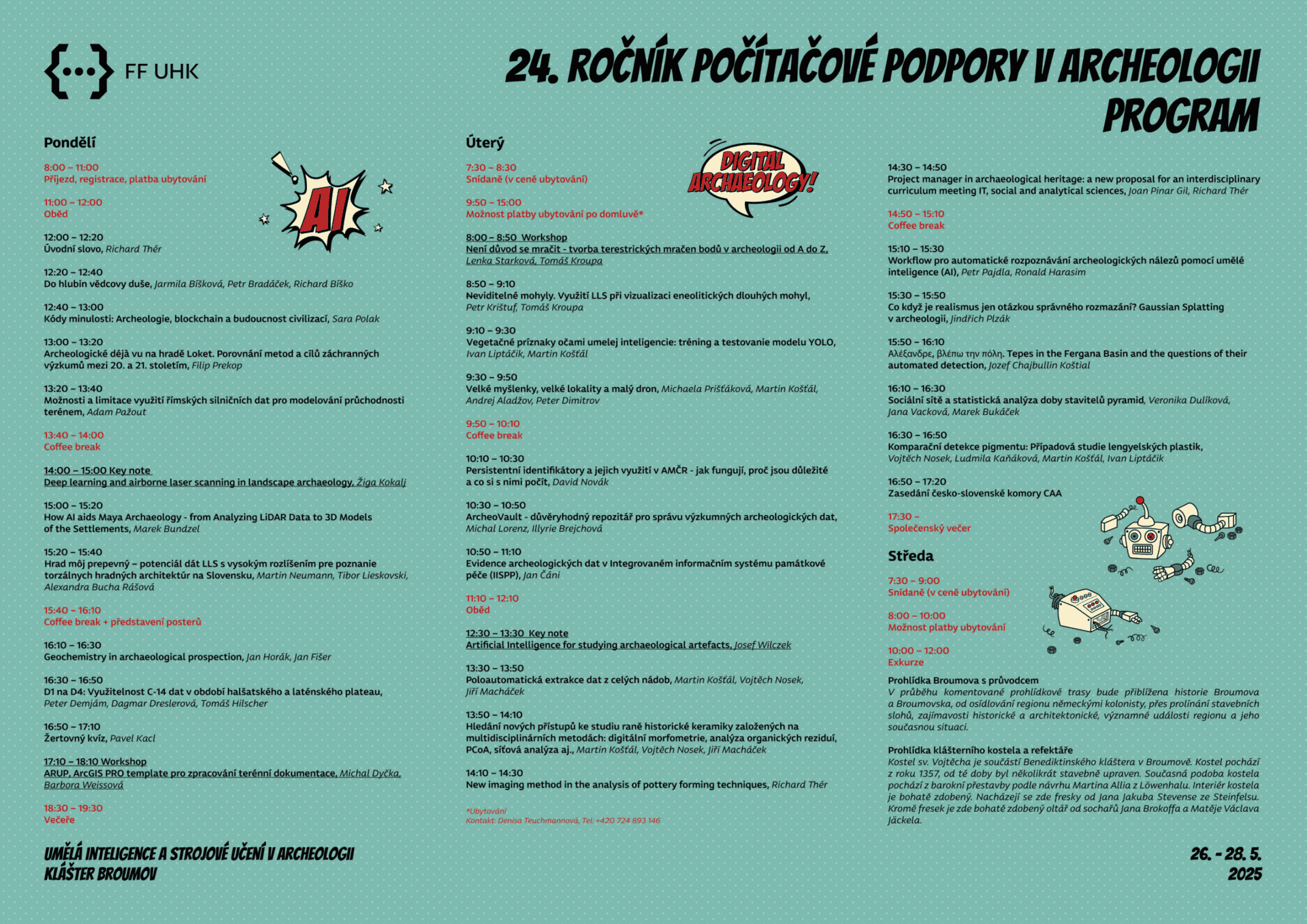 24. ročník konference Počítačová podpora v archeologii se bude konat ve dnech 26.  – 28. května 2025 v malebném prostředí Broumovského kláštera.